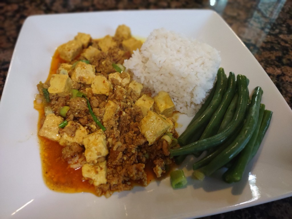 Braised pork and tofu, using a recipe I improvised. S loved it.