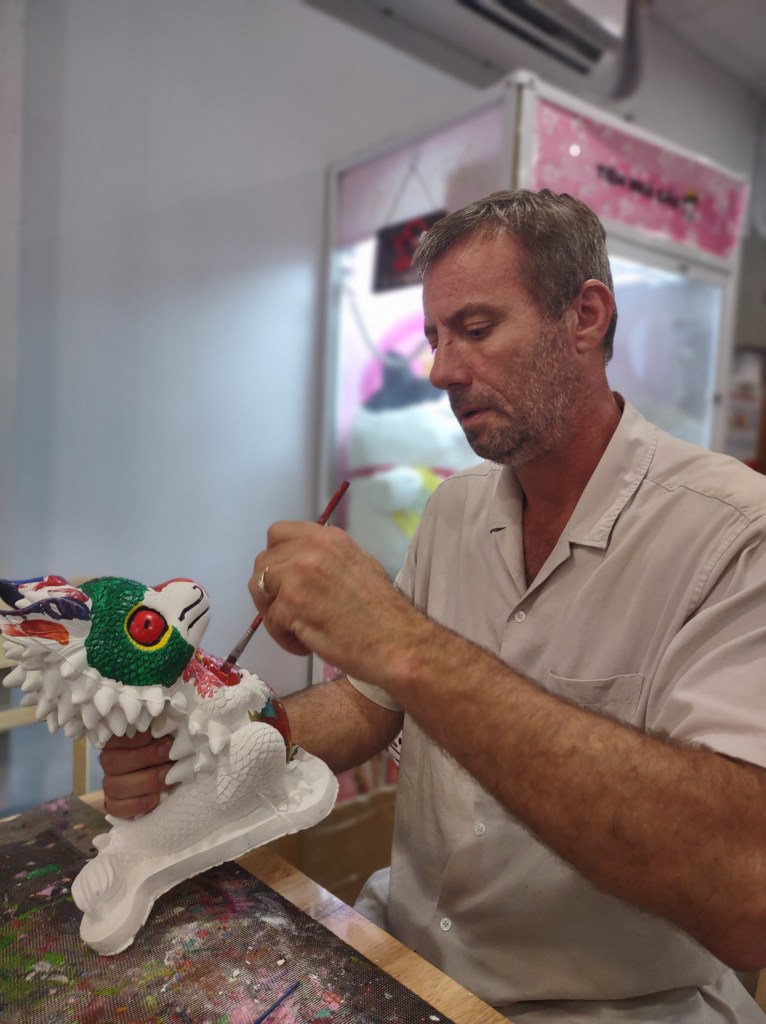Then, we chose statues and got tools and colors to get ready for painting. While the kids picked cute and lovely statues, S chose a massive dragon. It looked cocky and aggressive, appearing ready to explode with emotions like “someone”.