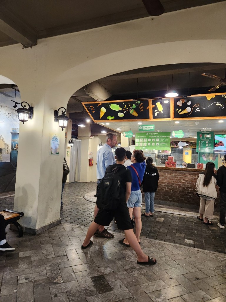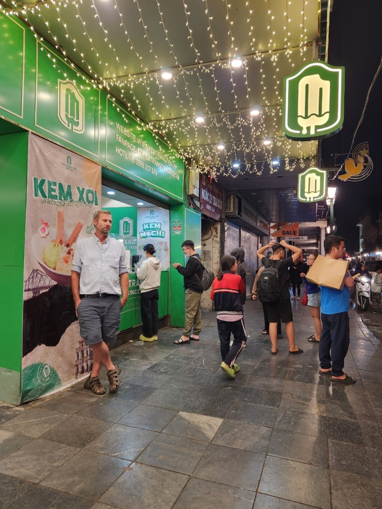 We strolled around Ho Guom, the Sword Lake, the heart of Hanoi. Then, we crossed the main street to enter Trang Tien street, where we stopped by Trang Tien ice cream shop, a local favorite and a must-visit destination for tourists.