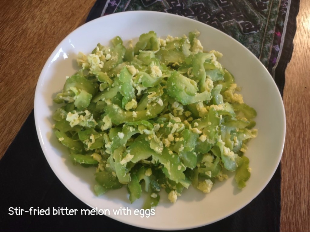 I grabbed jackfruit, yellow mango, mochi, coconut durian candy and durian cakes. I went on with two cups of sweet soup. One is a combination of sweet potato and cassava chunks with macadamia in coconut milk. The other, called “Chè bánh trôi”, consists of steamed sticky rice balls filled with mashed mung beans, swimming in a fresh ginger sweet syrup. I also couldn’t pass by “Bánh Cam” and “Bánh Giò”. “Bánh Cam” is a deep-fried sticky rice balls, covered with sesame seeds and filled with mashed mung beans and shredded coconut. “Bánh Giò” is a steamed pyramid-shaped rice dumpling wrapped in a banana leaf and stuffed with ground pork, egg, wood ear mushrooms, and chopped onions. The fillings of the sweet soup and savory treats can vary, but they are typically Vietnamese traditional street foods. Sorry, no photos of those as I couldn’t wait to binge on them. The other items I bought were Chinese eggplants and bitter melons. And I didn’t forget to get S coconut soda and his favorite type of bananas, which are thicker and shorter than regular bananas sold at American markets. They have pleasant sweetness and taste smooth and velvety. They don’t get mushy when overripe.